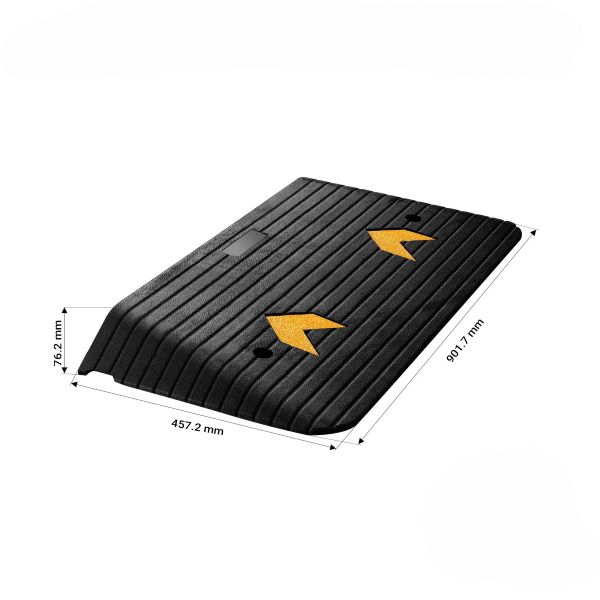 Plošče so namenjene za notranjo in zunanjo uporabo, odporne so na vlago, zmrzal in druge vremenske vplive, nedrseča površina pa še poveča stopnjo varnosti. Gumijasta rampa je primerna za prehod koles in invalidskih vozičkov. Ima rumene reflektivne nalepke za boljšo vidljivost.