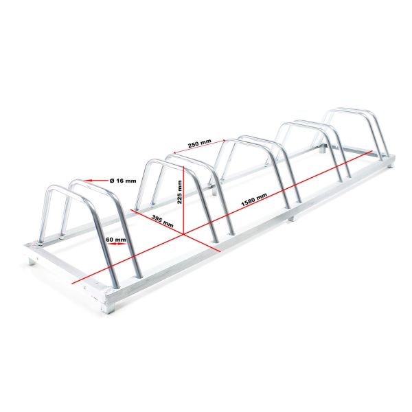 Trdno stojalo za kolo ponuja prostor za pet koles. Zahvaljujoč vodilu z dvojnim robom stojalo nudi varen oprijem in preprečuje prevračanje koles. Kolesa lahko parkirate vzporedno, eno ob drugem, ali z obeh strani. Zaradi svoje zasnove je primeren za skoraj vse vrste koles, premere in širine pnevmatik.
